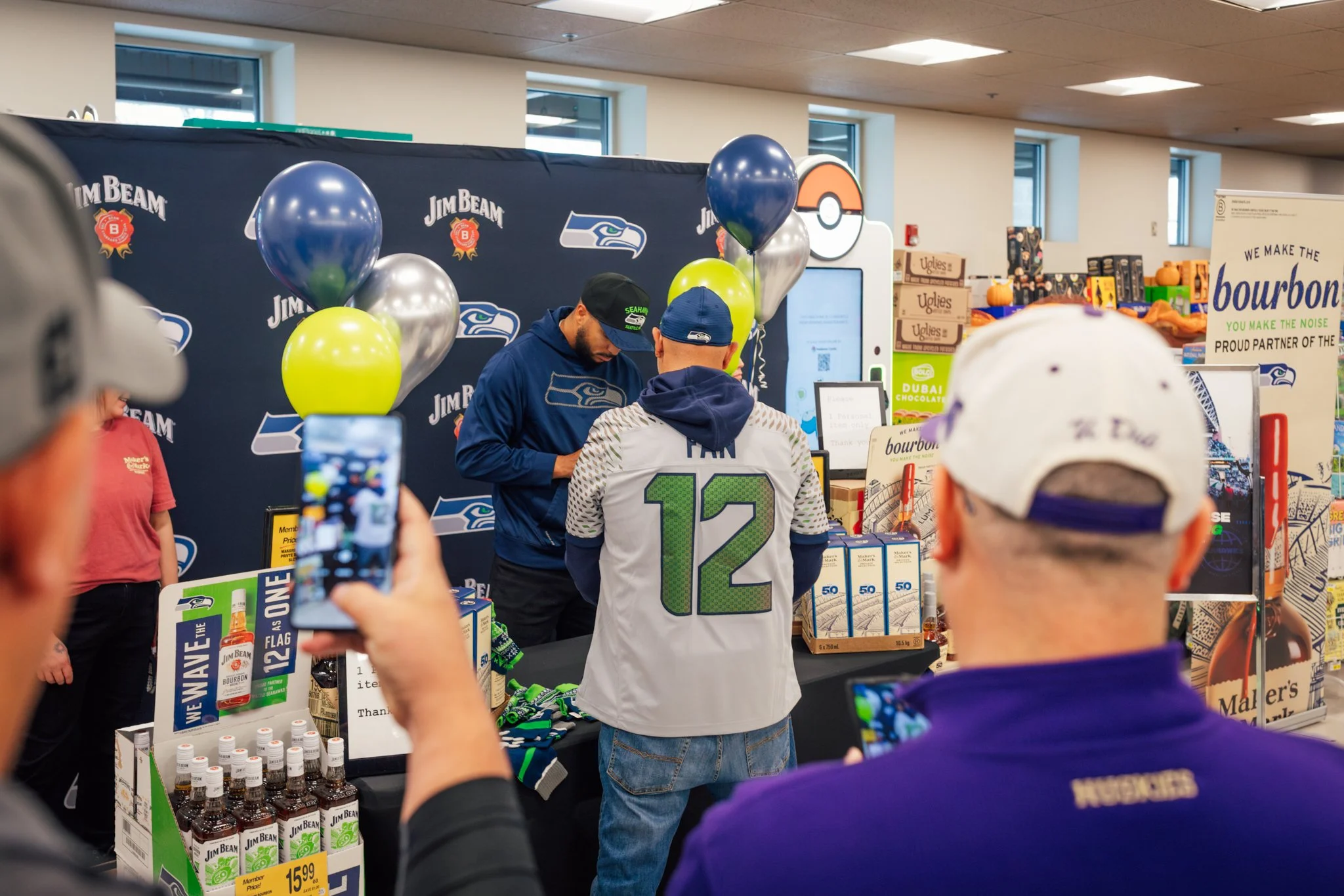 Jim Beam-sponsored bottle signing with retired Seattle Seahawk KJ Wright at the Bothell Safeway and Puyallup Safeway